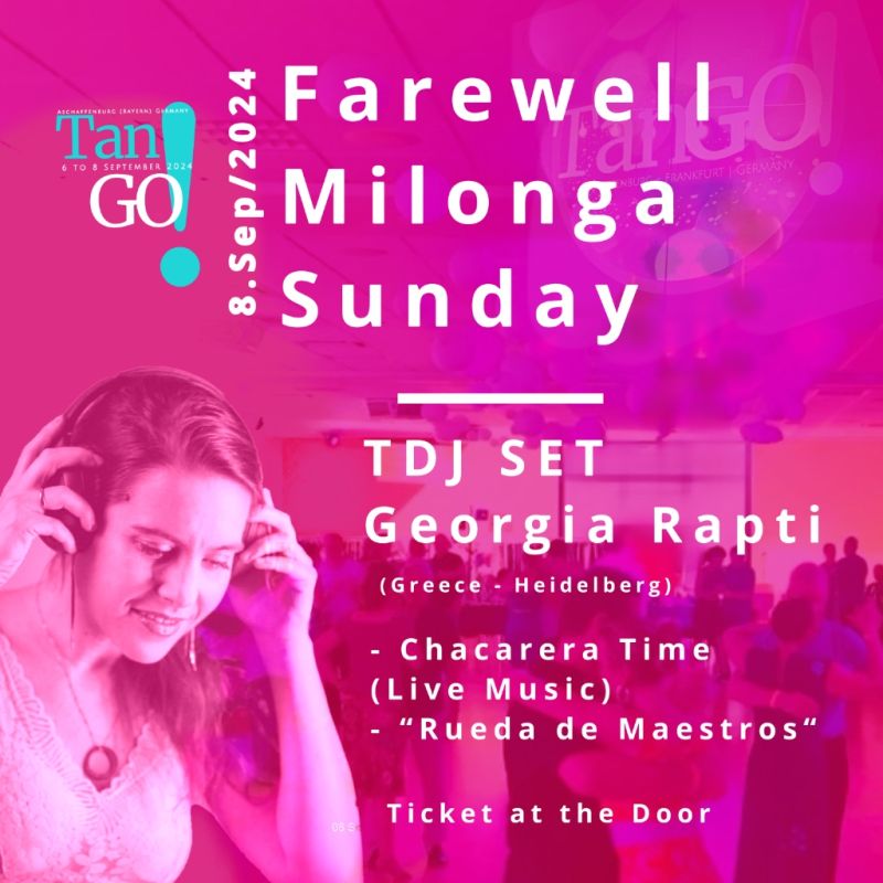 Farewell Milonga Sunday 8.9.2024 TDJ Georgia Rapti (Greece) Chacarera Time (Live Music) ”Rueda de Maestros”