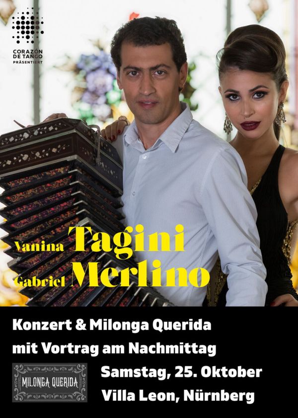 Erleben Sie eine Tango-Nacht mit Vanina Tagini und Gabriel Merlino in der Villa Leon. Im Anschluss lädt die Milonga Querida mit DJ Manu zum Tanz ein.