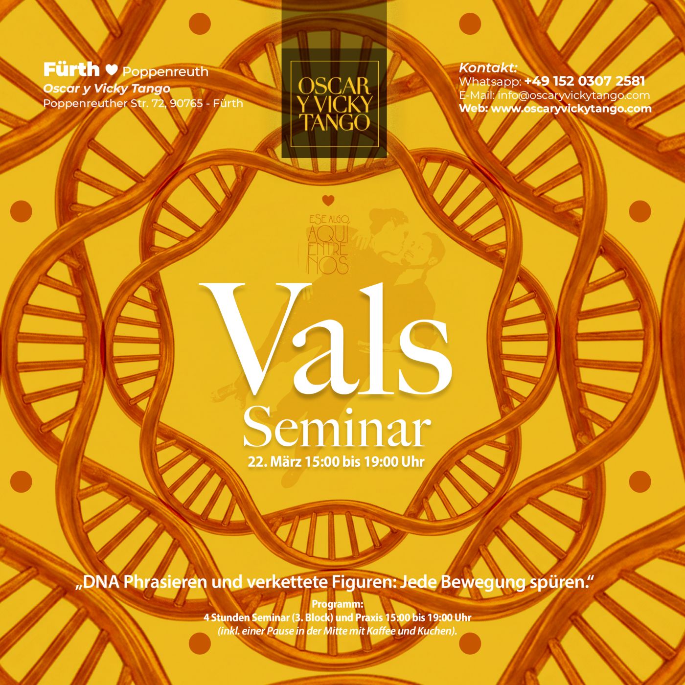Verantwortlich im Sinne des Pressegesetzes: Oscar y Vicky, im Kalender von Oscar y VickyE-Mail des Verantwortlichen: Info@oscaryvickytango.com Website: https://www.oscaryvickytango.com/vals-seminar Falls dieser Termin nicht gestimmt hat, dann bittet der Seitenknecht um eine kurze Information, denn Möglicherweise brauchen die Veranstalter Unterstüzung: Kontakt zum 1. Seitenknecht