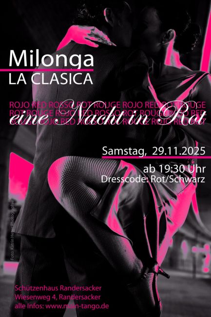 Samstag Abend // 19:30 Uhr MILONGA LA CLASICA - in ROT - ROUGE - ROJO - RED