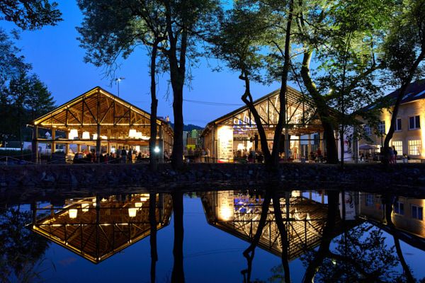 unter historischem Pferdestalldach auf dem ehemaligen Porzellanfabriksgelände Coburg.