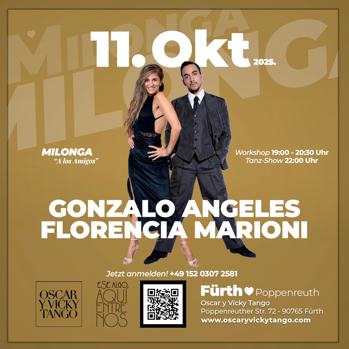 Milonga de los Amigos mit WS und Show von Gonzalo Angeles und Florencia Marioni bei Oscar y Vicky Tango
